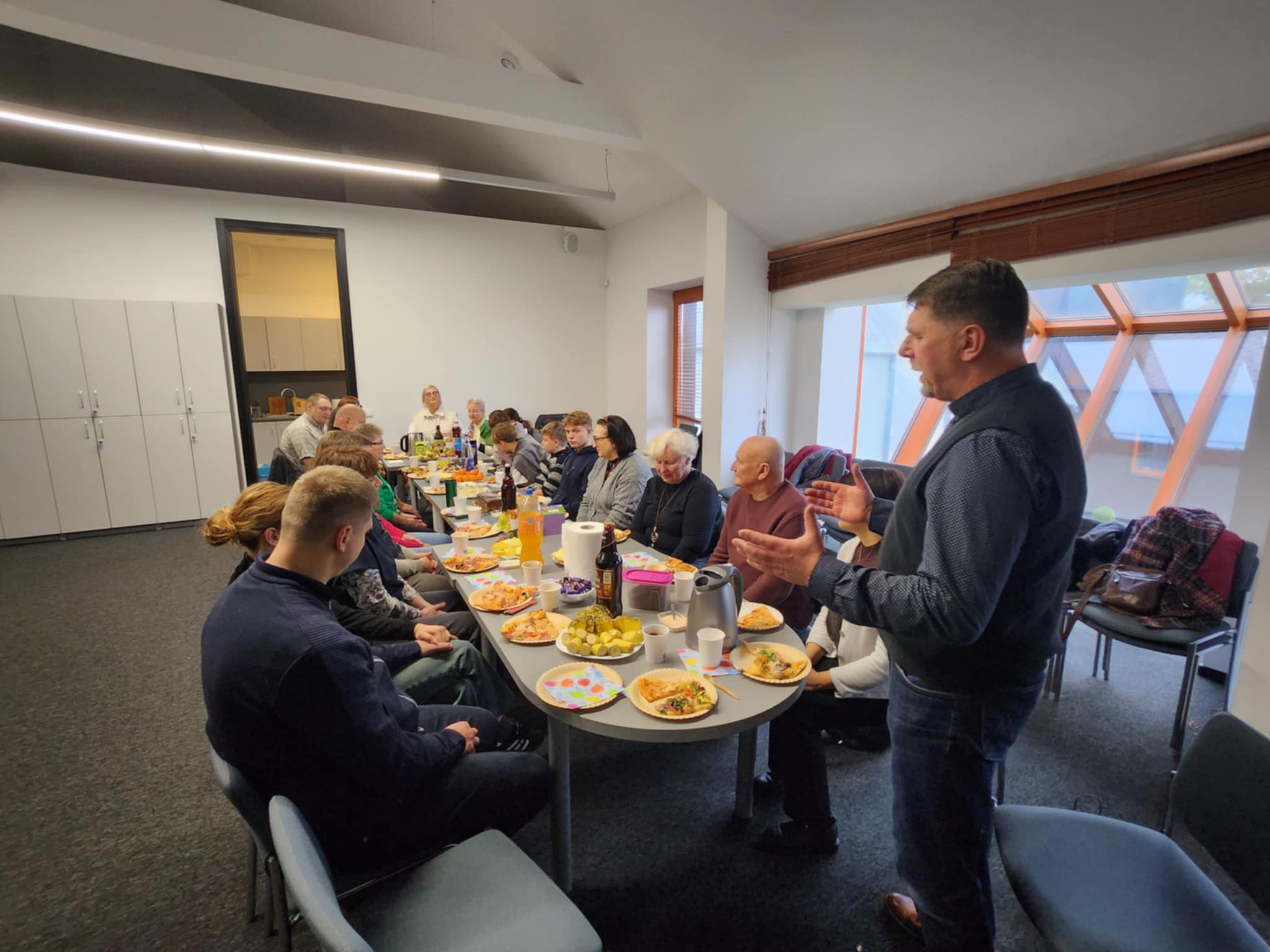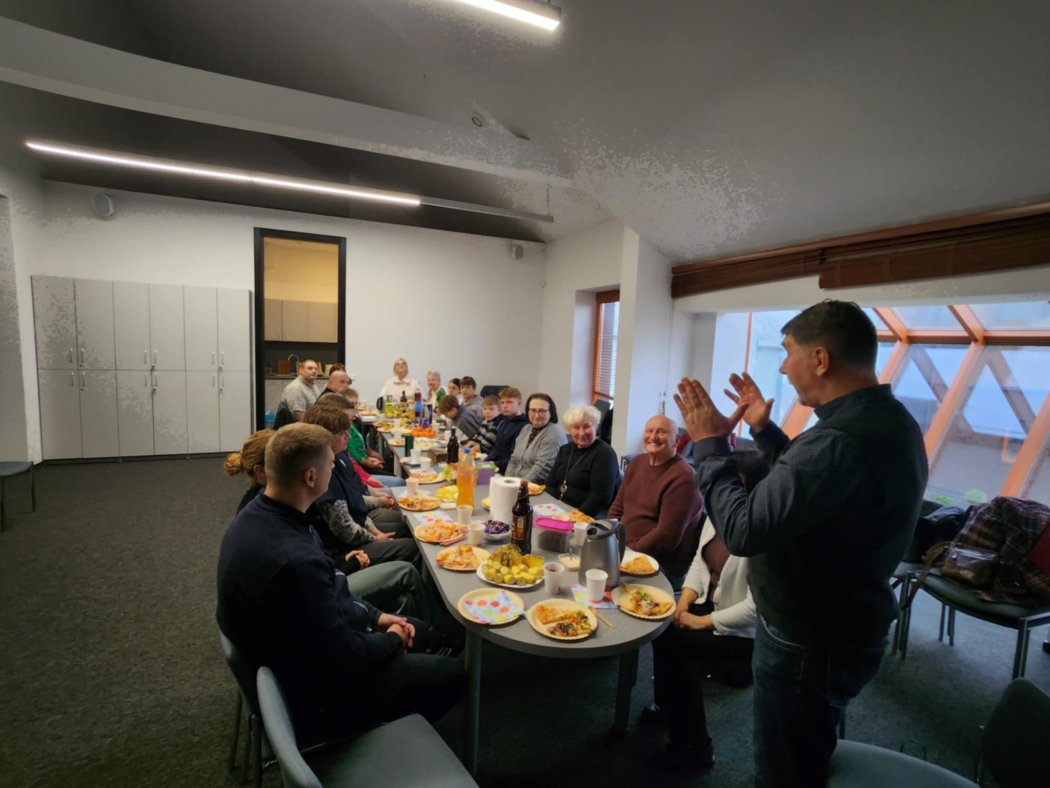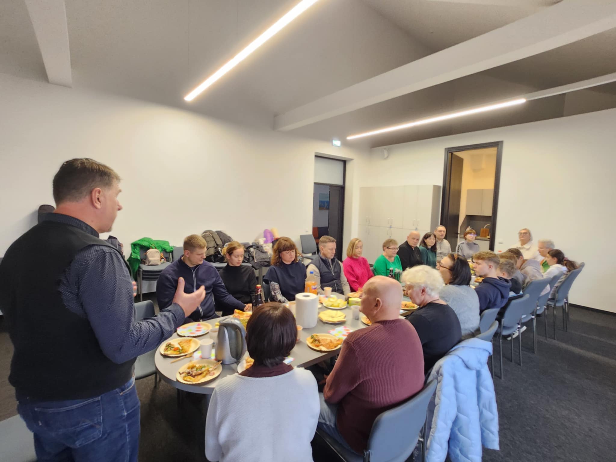 Šiandien Riešės tikintieji nusprendė savo 5-ąjį gimtadienį atšvęsti kartu su Vievio m. tikinčiaisiais. Klausėmės G.Miežonio pamokslą – „Džiaugsmas Viešpatyje”. Na, o poto ir vaišių stalas.