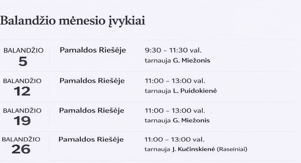 Bažnyčios susirinkimai vyksta: Sekmadieniais 11 val.